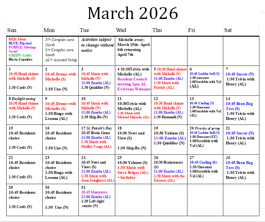Ayre Manor offers a full calendar of creative, social and physical activities for residents of all abilities.